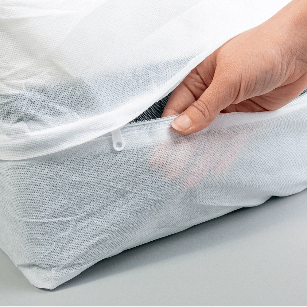 Wanneer het volledige matras moet worden beschermt kiest u voor de ROYAN matrasbeschermer. Het volledige matras wordt in de beschermer geplaatst. Deze wordt afgesloten met een ritssluiting. Het matras en de beschermer vormen samen één robuust geheel voor een lange levensduur Door de volledige bescherming is er geen sprake van vuil, kringen of vlekken. Voor bestaande (vervuilde) matrassen is de ROYAN de ideale oplossing om deze weer een professionele en schone uitstraling te geven. Door de ritssluiting wordt het ongeoorloofd meenemen van de matrasbeschermer geminimaliseerd.